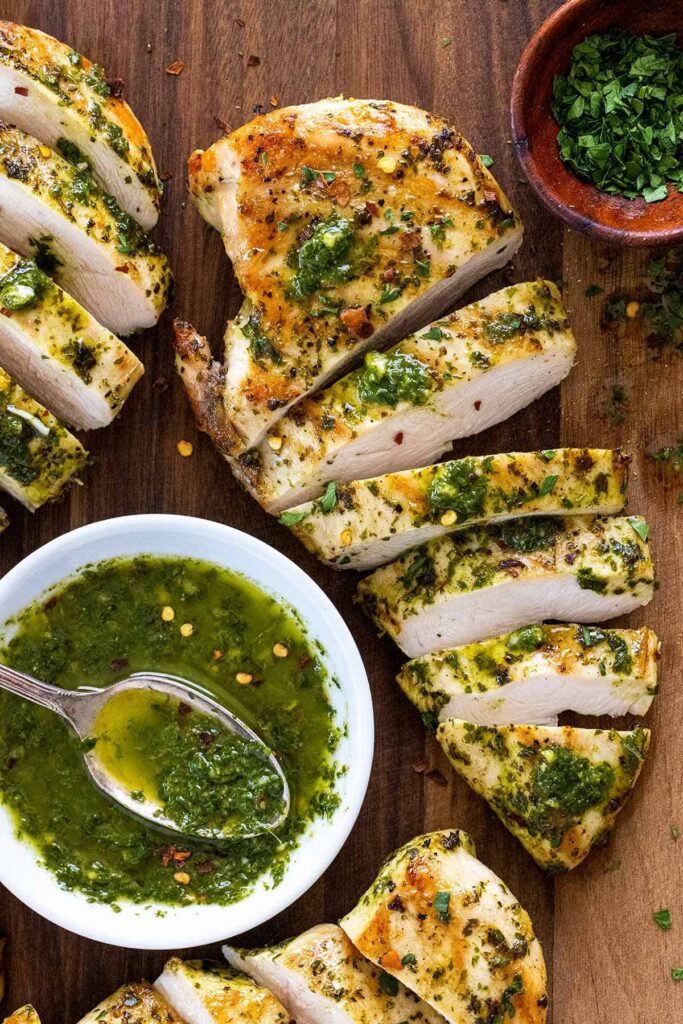 Marinate the chicken in chimichurri before cooking. This helps the herbs soak into the meat for better taste.