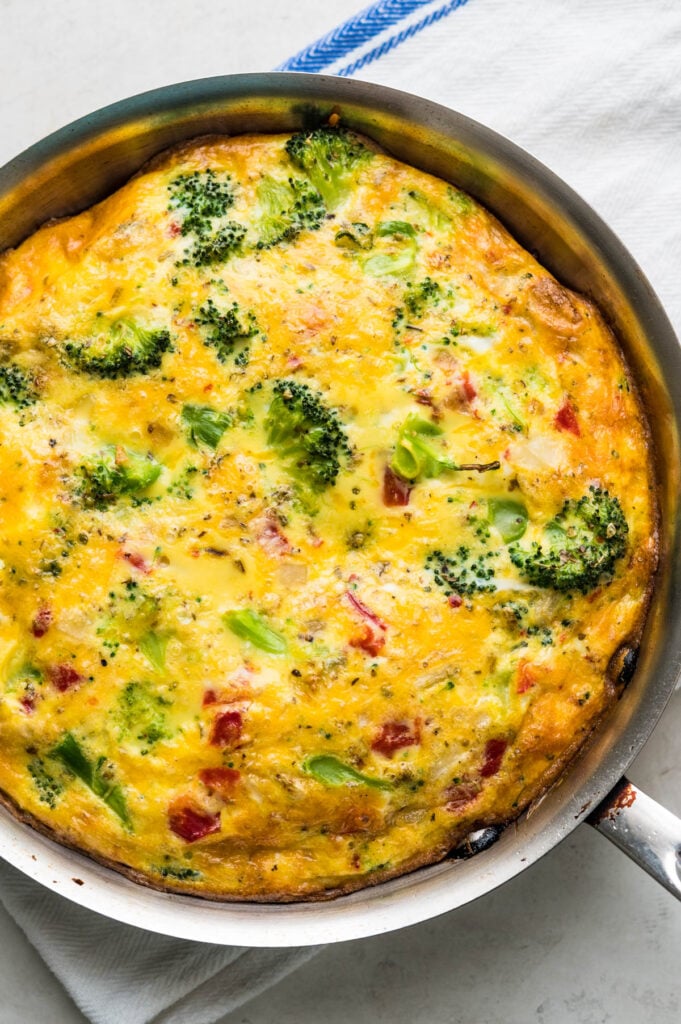 A broccoli frittata makes breakfast easy and healthy. You cook everything in one pan, which means less cleanup.