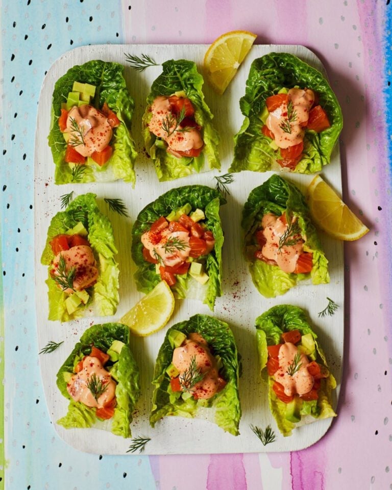 These appetizers put a fresh spin on the classic prawn cocktail. Serve them in crisp lettuce leaves that act as natural boats.