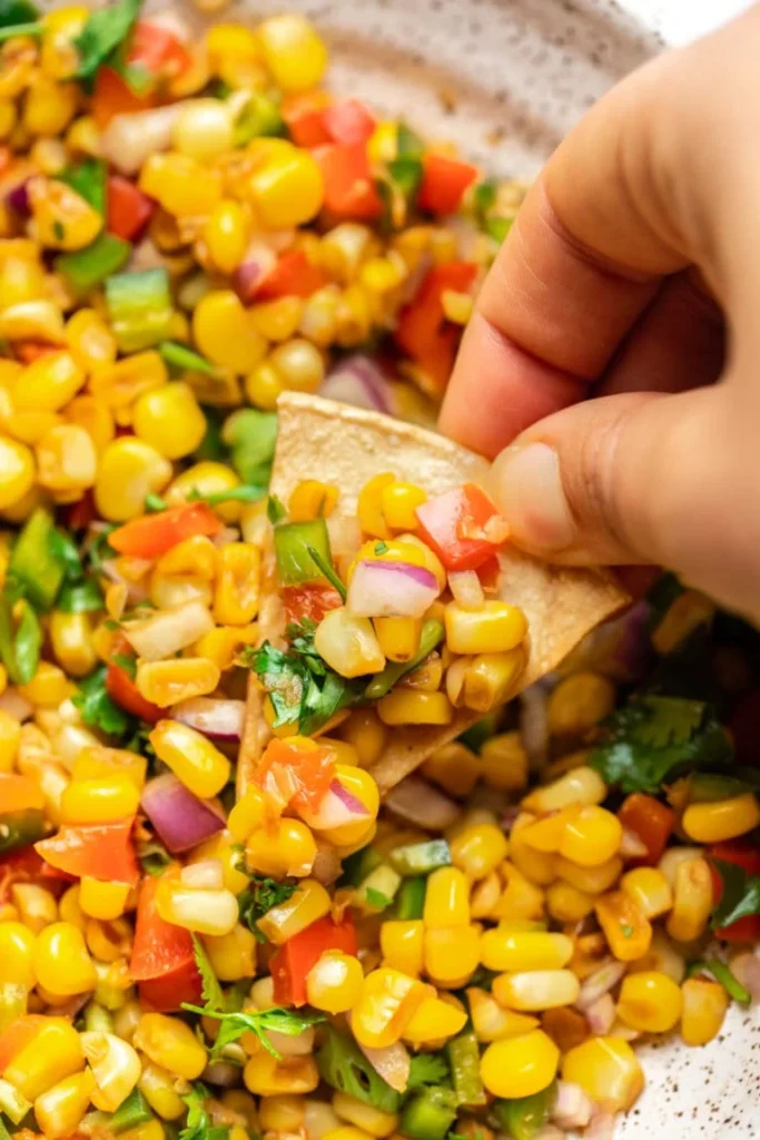 This versatile corn salsa combines sweet corn kernels with jalapeños and lime for a perfect balance of flavors. You can make it with fresh corn on the cob or frozen kernels.