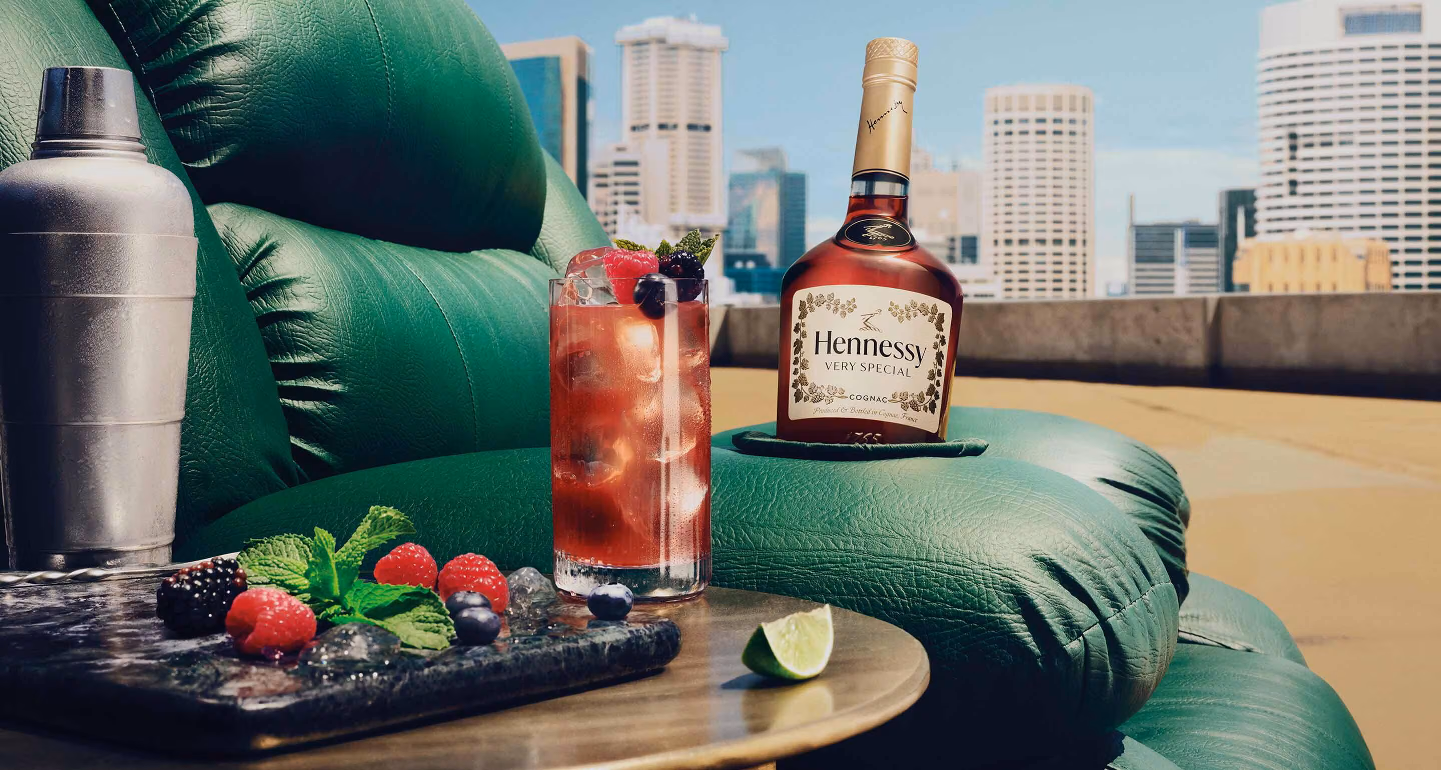 The Hennessy Berry Smash combines fresh berries with smooth cognac for a fruity twist. Muddle mixed berries in the bottom of your glass to release their natural juices.