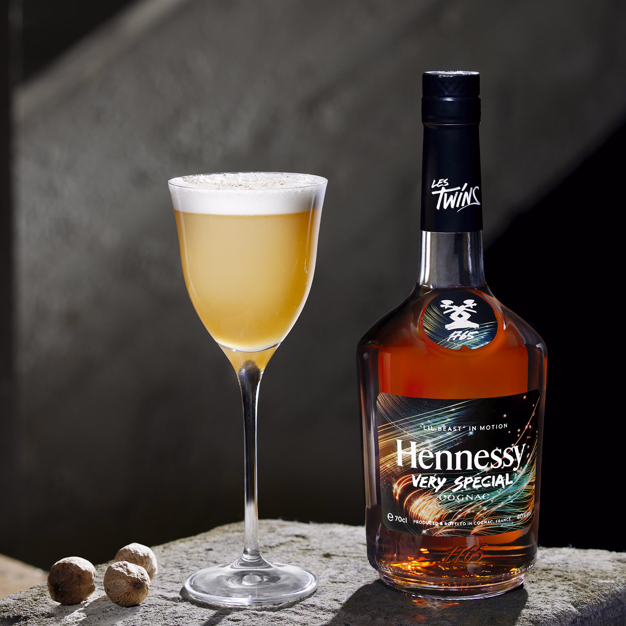 You’ll need 2 ounces of Hennessy cognac, 1 ounce of fresh lemon juice, and 3/4 ounce of simple syrup. Shake all ingredients with ice and strain into a rocks glass.
