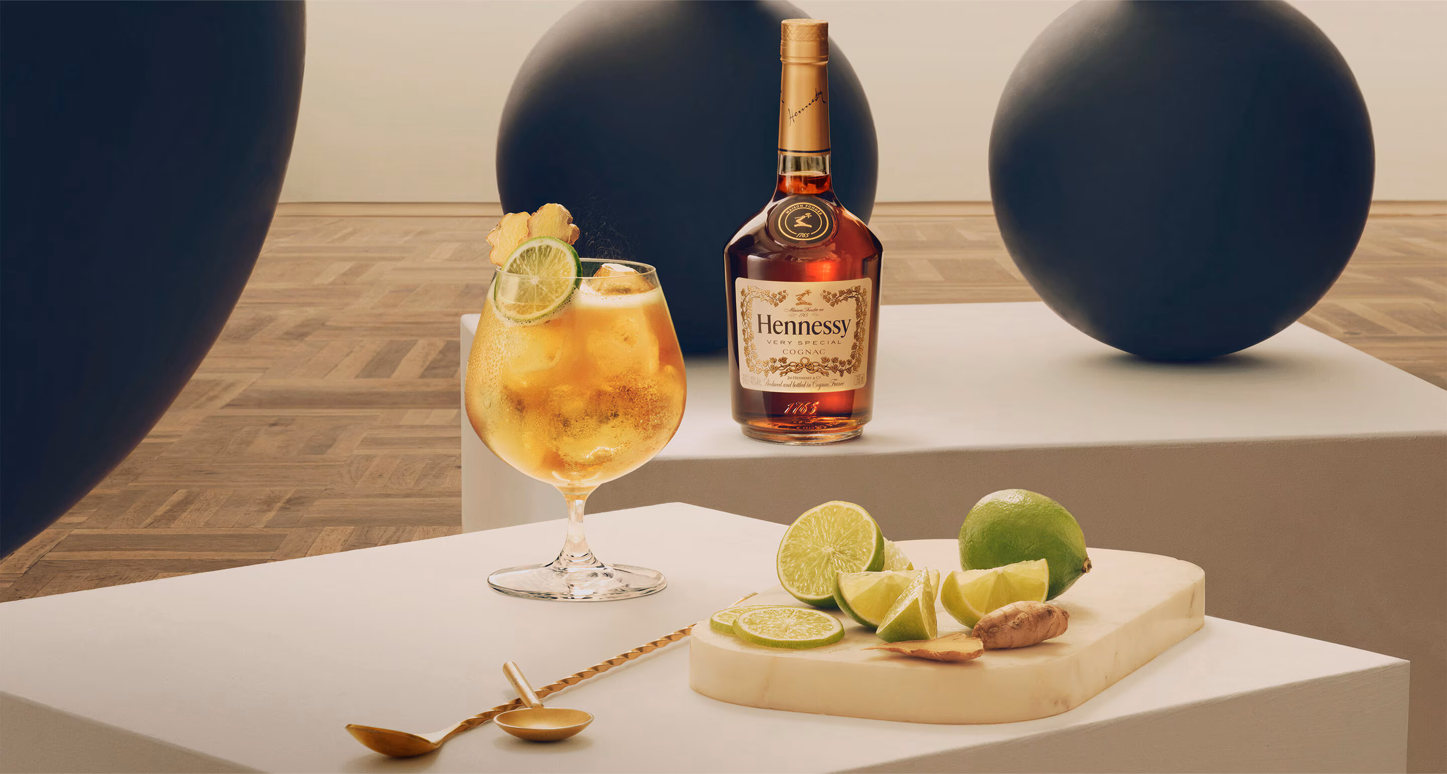 Mix 1.5 oz Hennessy Very Special with 4 oz ginger beer in a rocks glass filled with ice. Garnish with a lime wedge and fresh ginger slice.