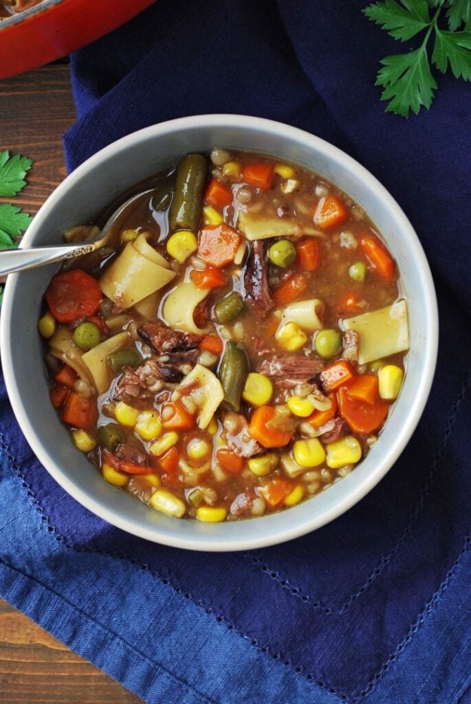 This hearty soup turns your leftover prime rib into a comforting meal. Use both the meat and bones to create rich flavor.