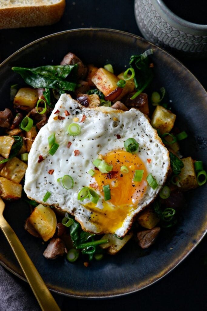 Top the hash with fried eggs for extra protein. This meal works well for any time of day.