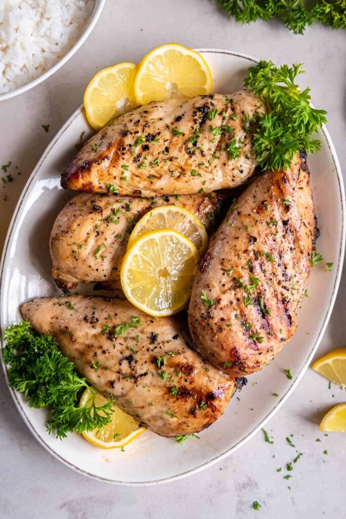 Lemon pepper grilled chicken breast is another fast option. Season the chicken with lemon juice, pepper, and salt, then grill for about 20-25 minutes, flipping halfway through.
