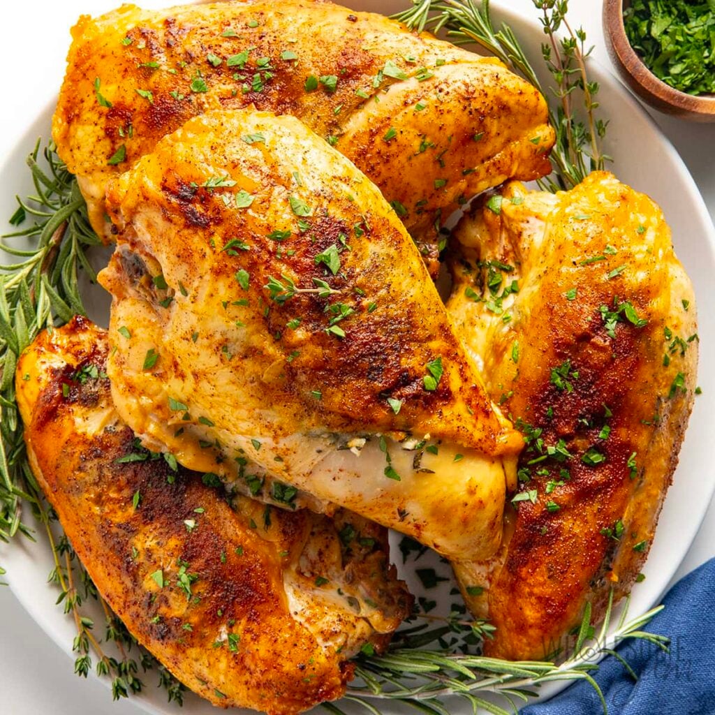 Cooking bone-in chicken breasts is easier than you might think. You can oven-roast, grill, slow cook, or air fry them.