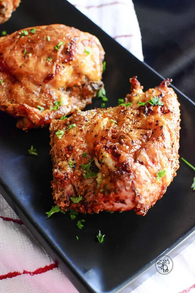 Cook it at the right temperature and the bone helps keep the meat juicy. The air fryer circulates hot air around the chicken to create that crispy texture without much oil.