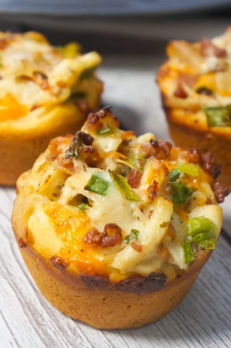 Each cup combines flaky biscuit layers with savory fillings in a convenient handheld form.
