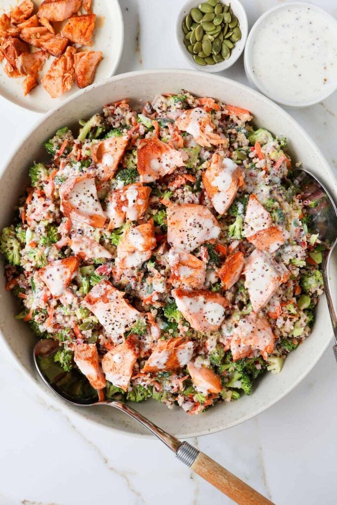 Create a nutritious meal by combining canned salmon with quinoa. This bowl provides protein from both the salmon and quinoa, making it filling and satisfying.