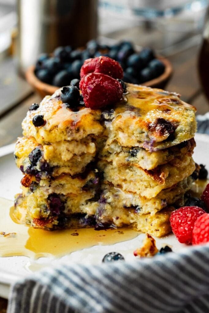 Cottage cheese pancakes with blueberries make a great breakfast option because they’re high in protein and keep you full longer. The protein content helps control your hunger throughout the morning.