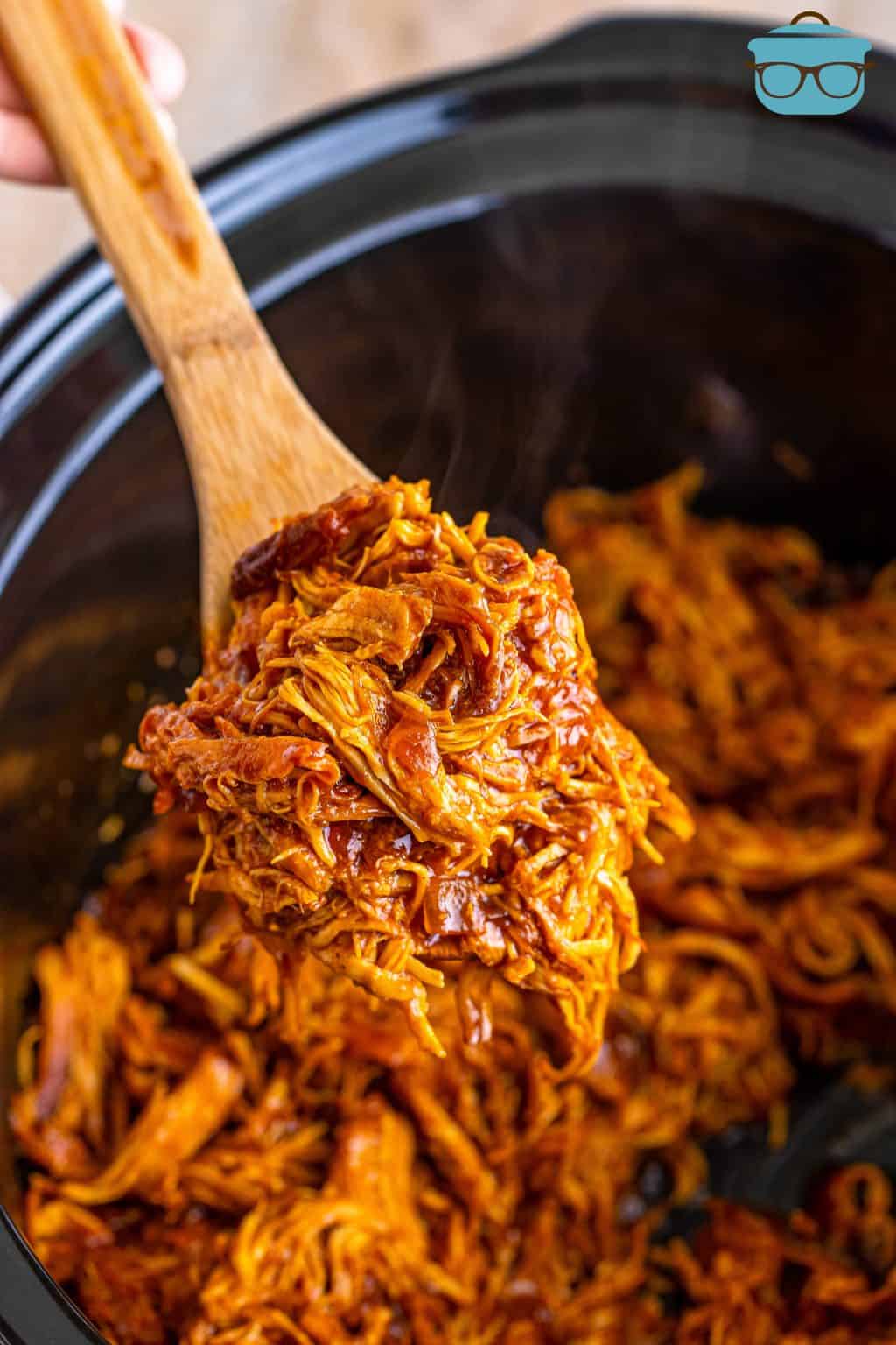 The chicken becomes tender enough to shred easily with a fork. You can use homemade or store-bought BBQ sauce depending on your time and preference.