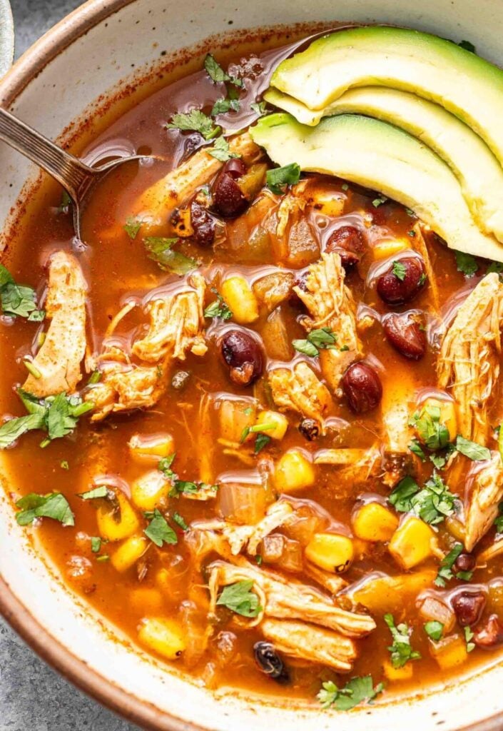 This classic soup combines shredded chicken with black beans, corn, and tomatoes in a flavorful broth. You’ll appreciate the simple prep time of just five to ten minutes before letting your crockpot do the work.