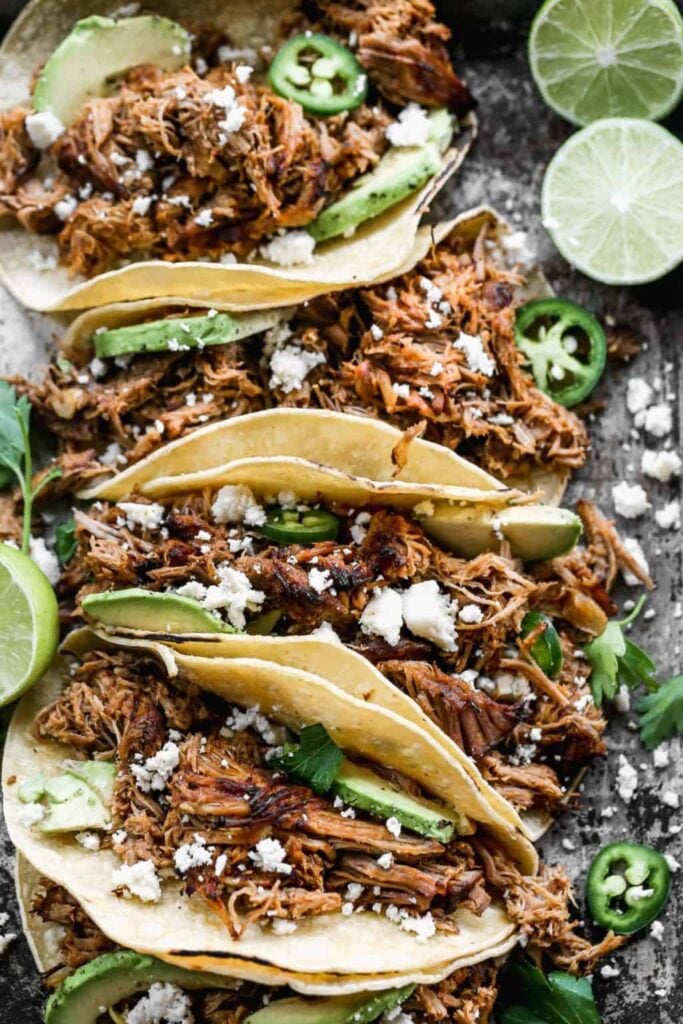 Your guests can pile it into tortillas with toppings like pico de gallo, cheese, and avocado.