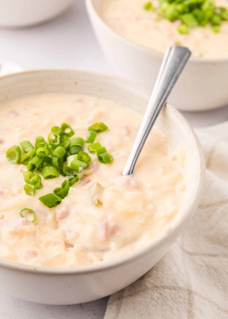 This soup works great when you want a filling meal without much work. You can use leftover ham or buy fresh diced ham from the store.