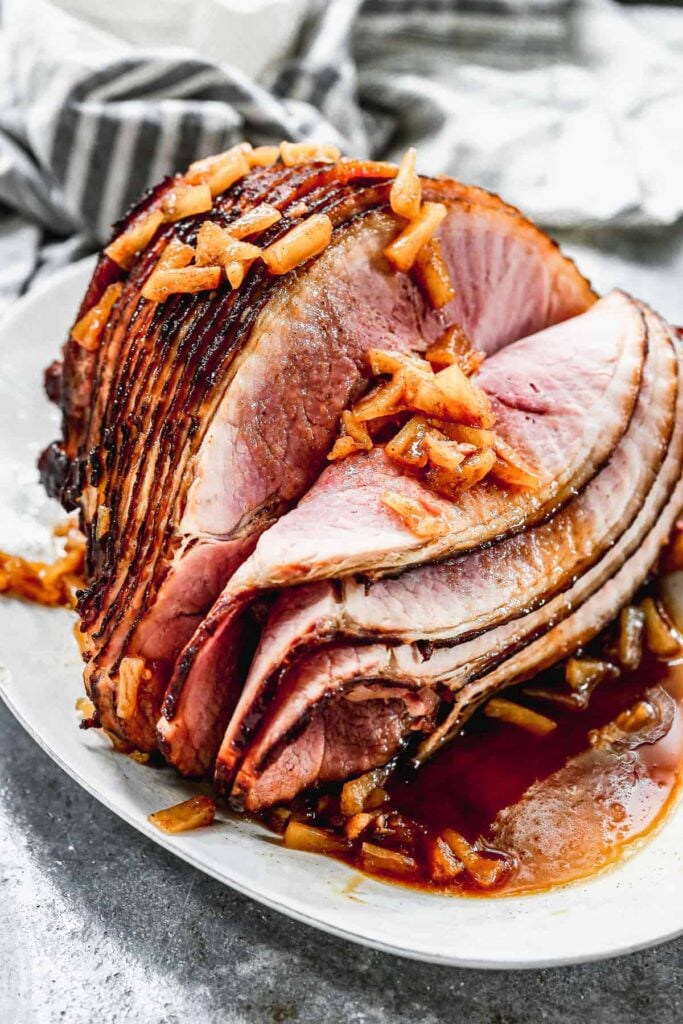 A spiral ham with pineapple glaze makes an excellent centerpiece for your Easter table. The brown sugar and pineapple create a sweet coating that caramelizes as the ham bakes.