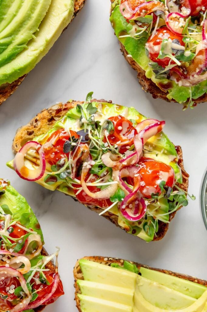 9. Avocado Toast Bites with Cherry Tomatoes