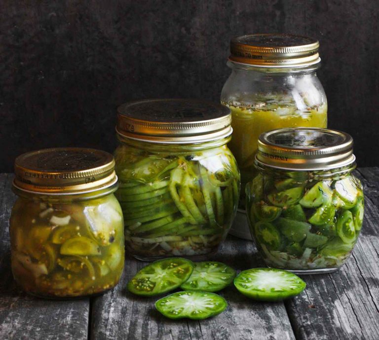 Green tomato pickles turn unripe tomatoes into a tangy, crunchy condiment. Make them as refrigerator pickles without any canning equipment.