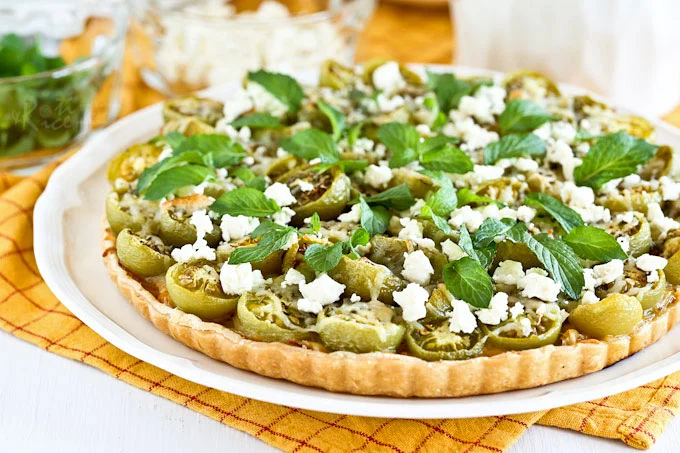 This tart combines tangy green tomatoes with sweet caramelized onions in a flaky crust. Use puff pastry or make your own pie dough for the base.