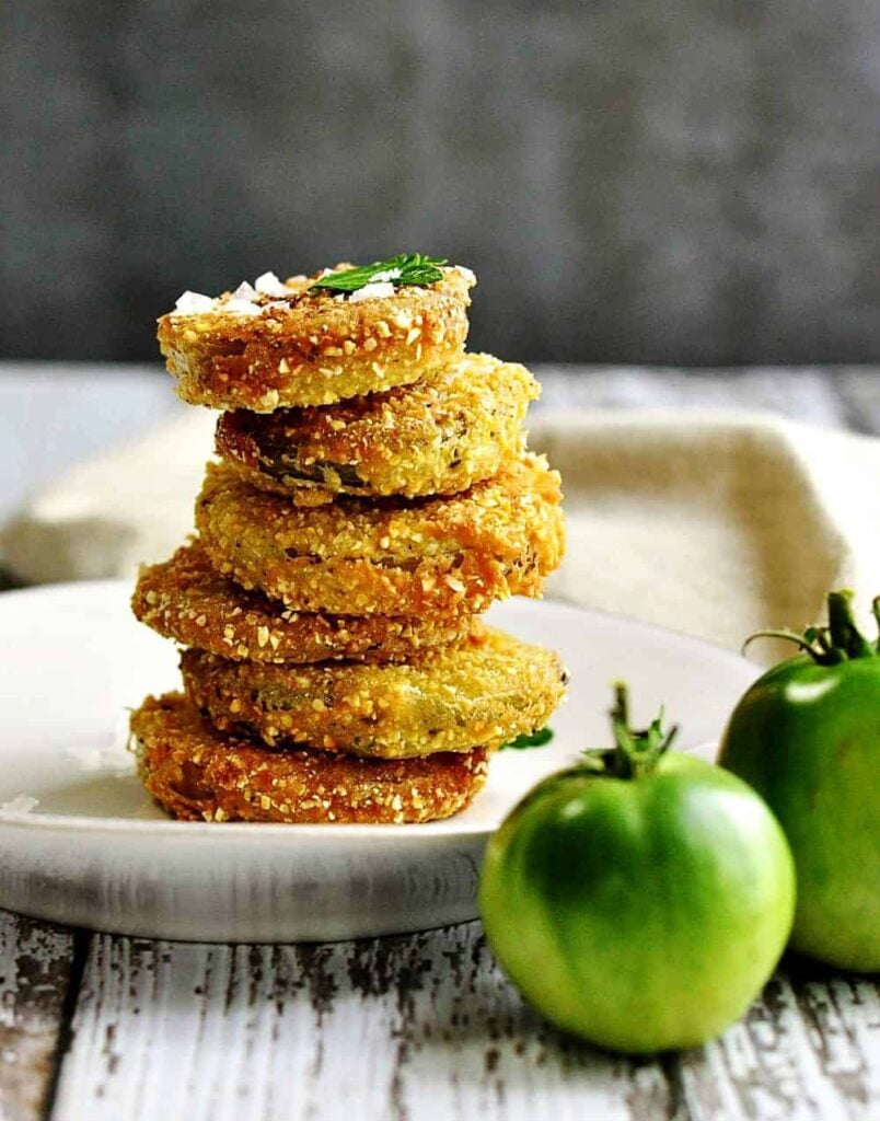 The three-step breading process creates a crunchy exterior that contrasts perfectly with the tart, firm tomato inside. Fry them in vegetable oil or bacon drippings for extra flavor.