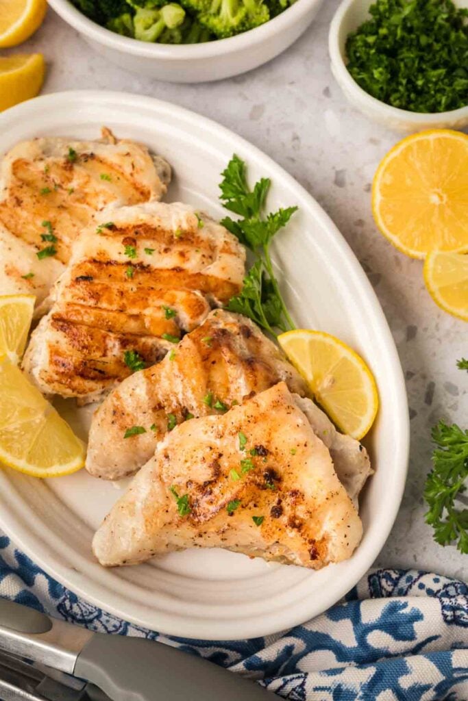 The marinade tenderizes the fish while adding bright flavors. When you grill it, you get a nice charred outside and moist, flaky fish inside.