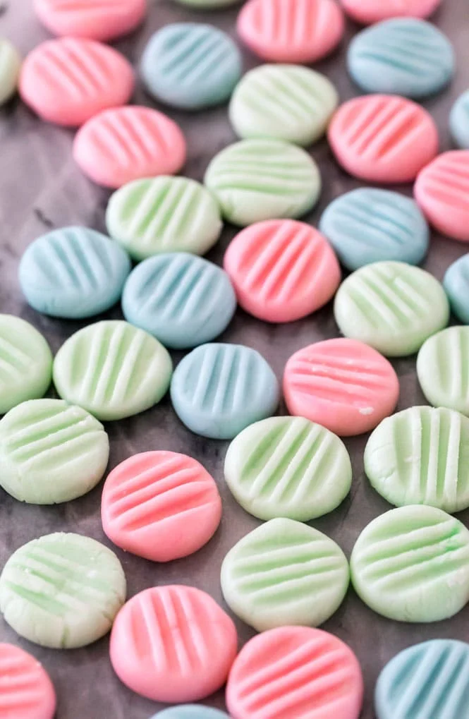These mints have a soft, creamy texture and a mild peppermint flavor. Shape them using candy molds or roll them into small balls.