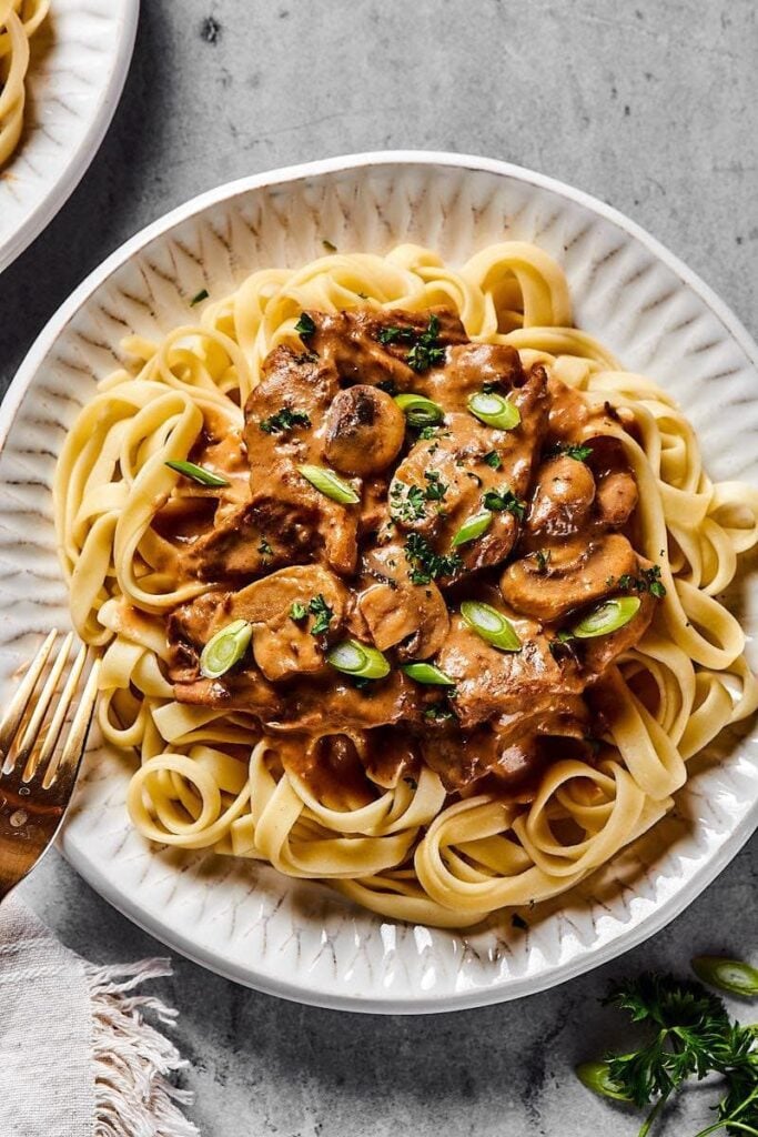 This low-carb version of beef stroganoff keeps all the creamy comfort of the original while staying keto-friendly. Cook tender beef with mushrooms in a rich sour cream sauce.