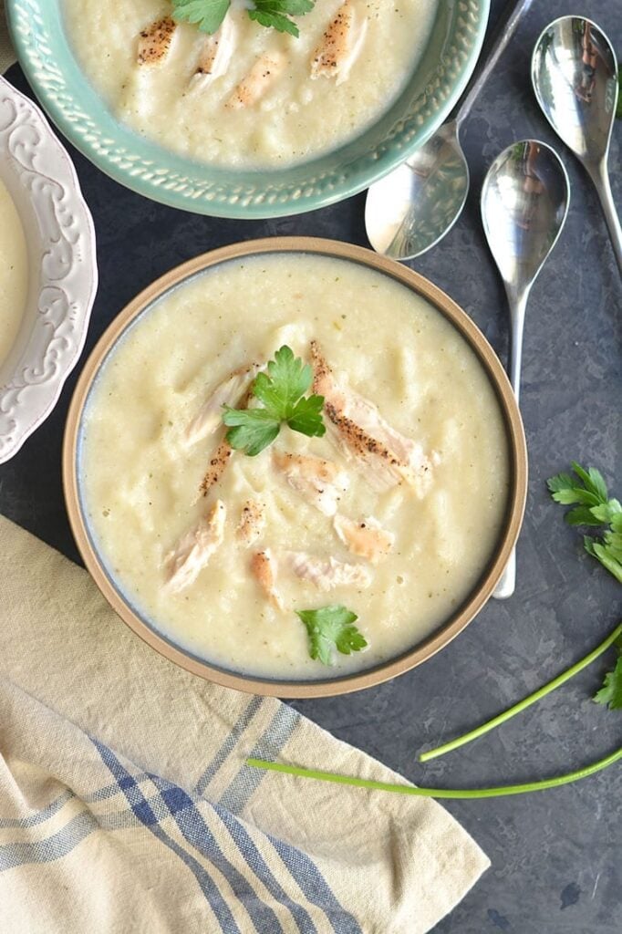 This soup replaces potatoes with cauliflower to keep carbs low while delivering rich, creamy texture. You’ll get tender chicken pieces in every spoonful along with cauliflower that becomes naturally creamy when blended.