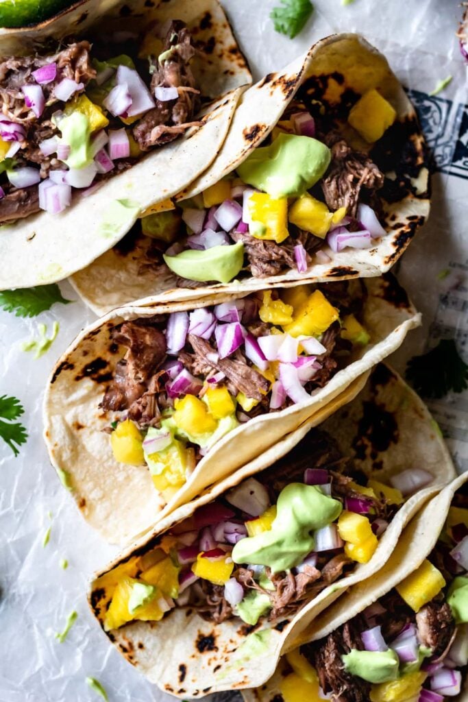 The avocado salsa adds freshness to the rich meat. Mix diced avocado with lime juice, cilantro, and diced tomatoes for a simple topping.