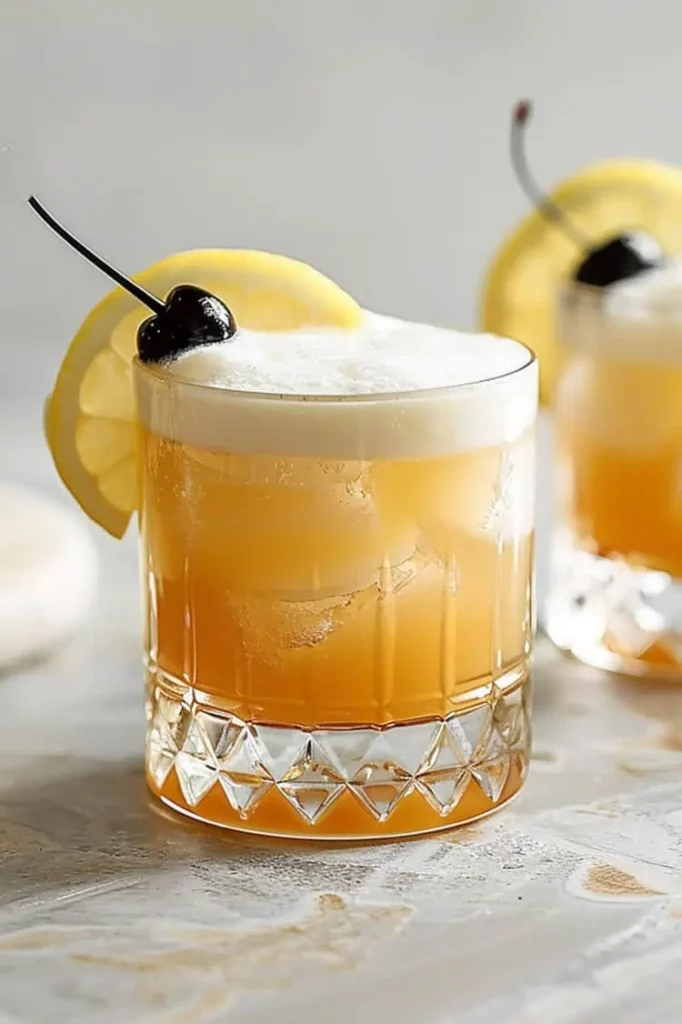 The Whiskey Sour is a classic lemon cocktail that balances sweet and tart flavors perfectly. You’ll need whiskey, fresh lemon juice, and simple syrup to make this drink.