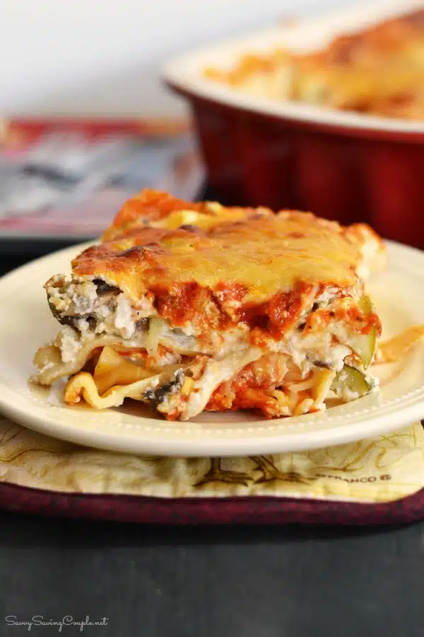Hearty Vegetable Lasagna packs multiple servings of vegetables into each portion. You get nutrients from spinach, zucchini, tomatoes, and other vegetables layered between the noodles.