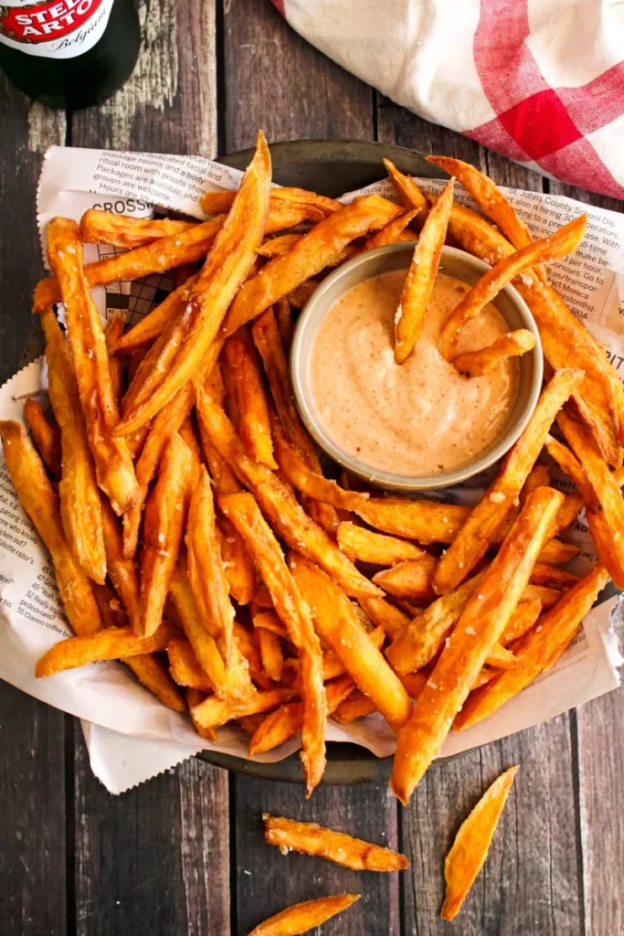 Bake them in the oven or use an air fryer for a healthier option. The golden, crispy fries work especially well with BBQ pork because the sweet and savory flavors complement each other.