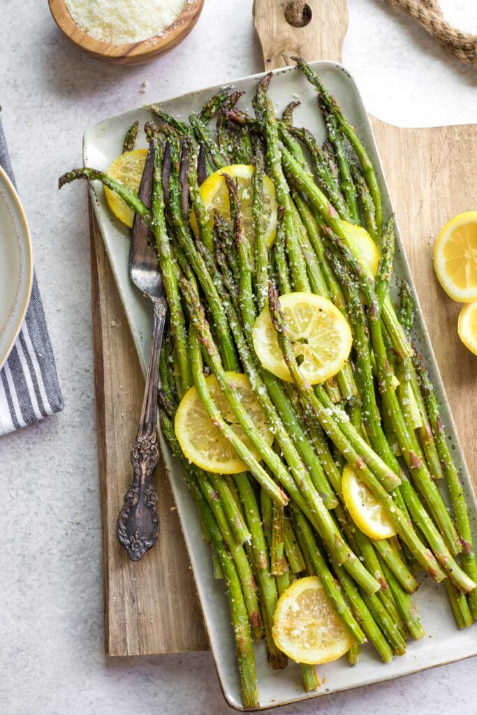 Fresh lemon brightens up the dish. You can squeeze lemon juice over the asparagus or toss it with a simple lemon vinaigrette.
