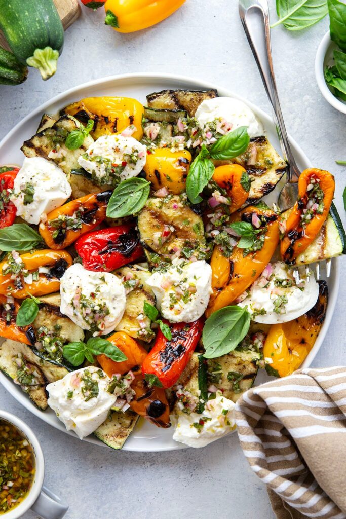 Grilled vegetable platters serve both vegetarians and vegans. Season them with herbs, garlic, and olive oil for flavor without animal products.