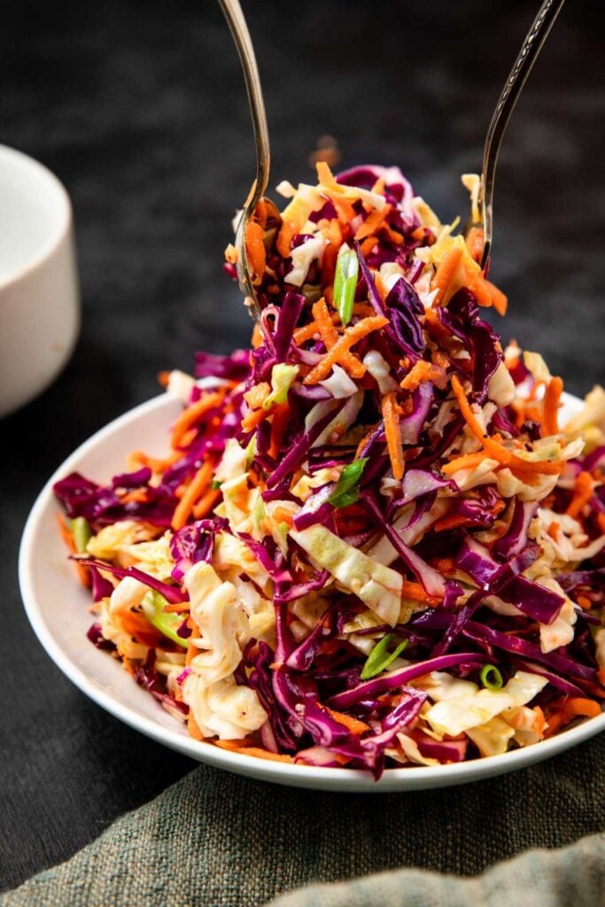 This side dish is easy to prepare ahead of time. The flavors actually improve when the coleslaw sits in the fridge for a few hours before serving.