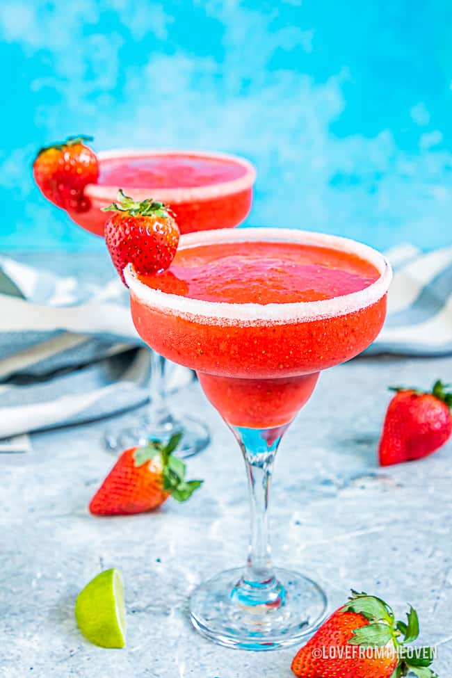 Blend strawberries with rum, simple syrup, and lime juice until smooth. Serve it frozen for a slushy texture or pour it over ice for a different experience.