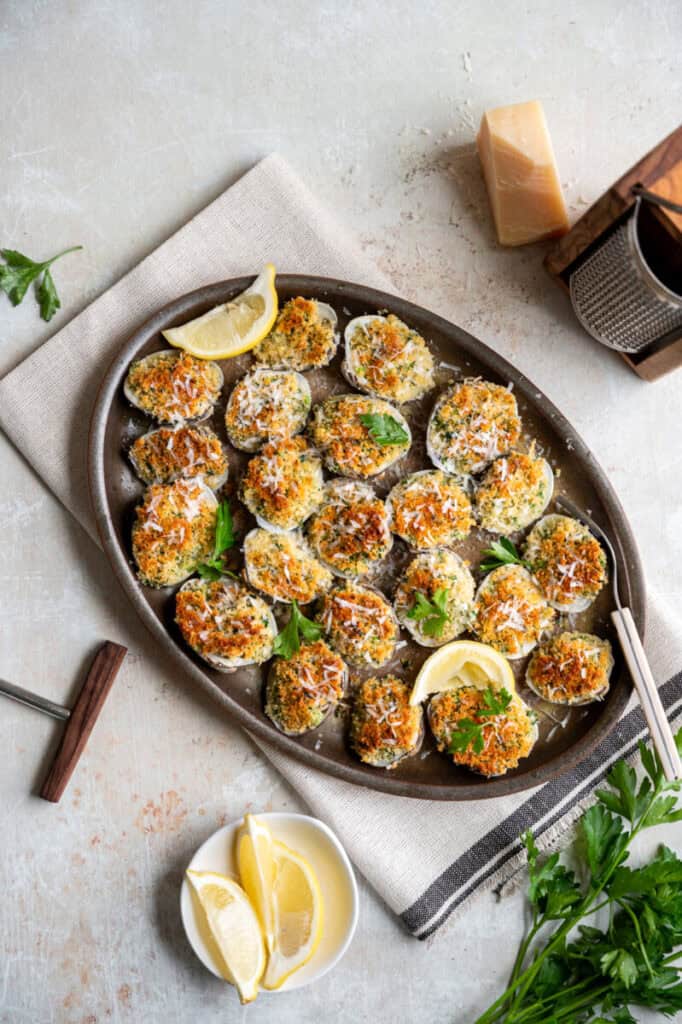 Broiled clams with Parmesan create a perfect balance of briny seafood and rich cheese flavors. Use fresh littleneck or cherrystone clams for the best results.