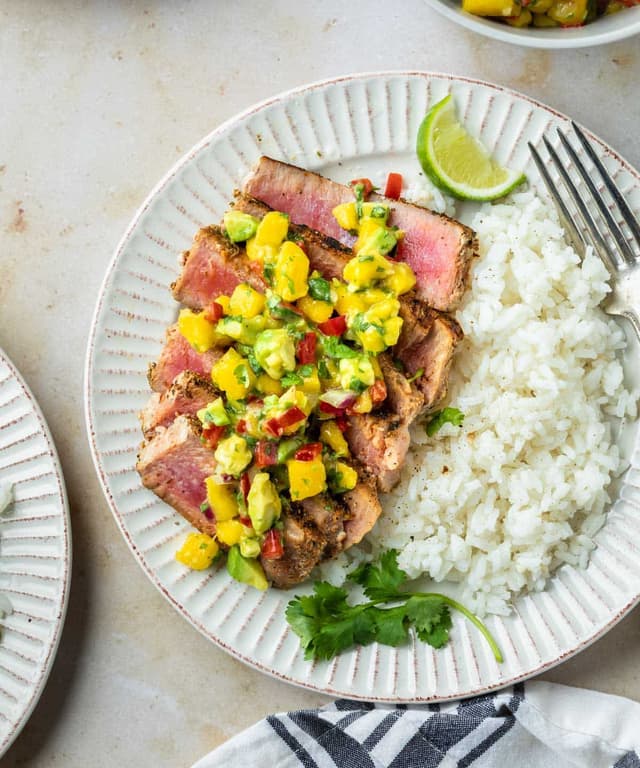 You can make this tropical dish in under 30 minutes. The sweet mango pairs perfectly with the smoky grilled tuna.