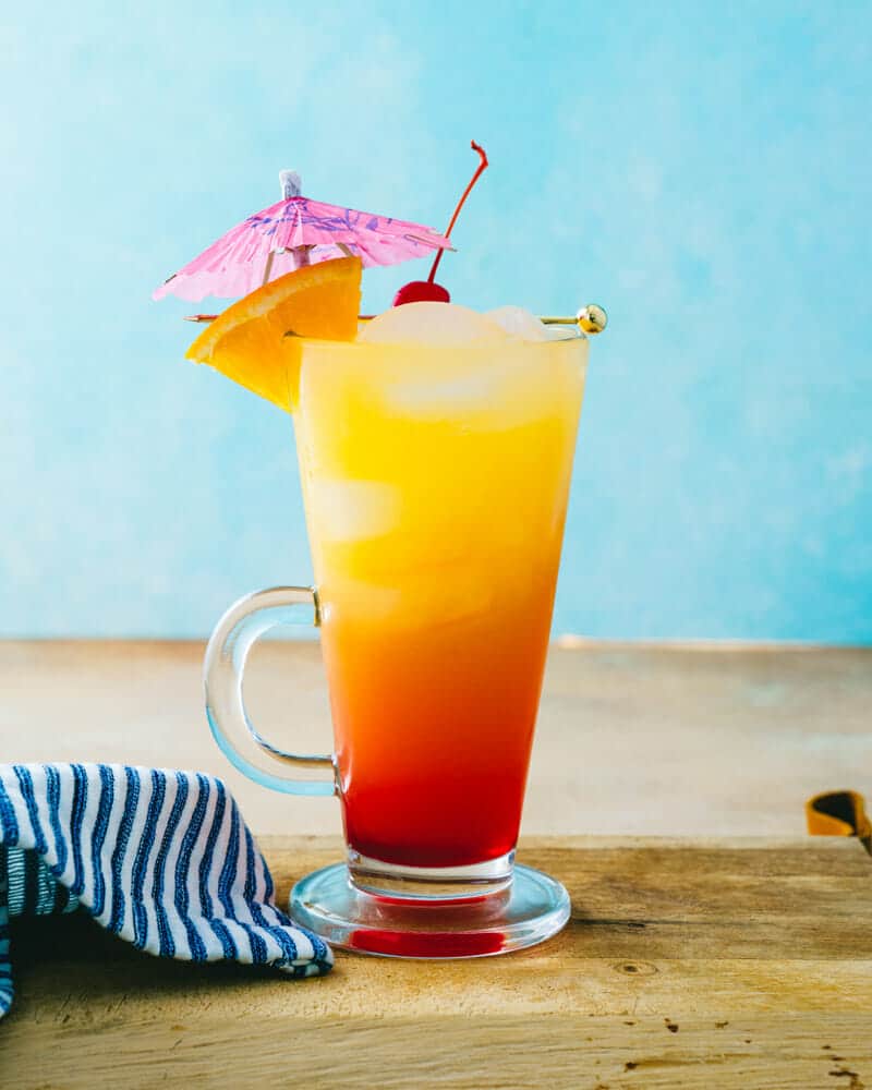 This drink gets its name from the beautiful sunset colors. The grenadine creates red layers at the bottom that fade to clear at the top.