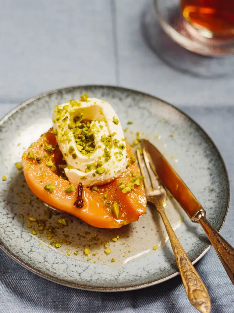 You’ll find this traditional Turkish dessert in restaurants during winter months. Ayva Tatlısı uses quince, a seasonal fruit available from October to January.