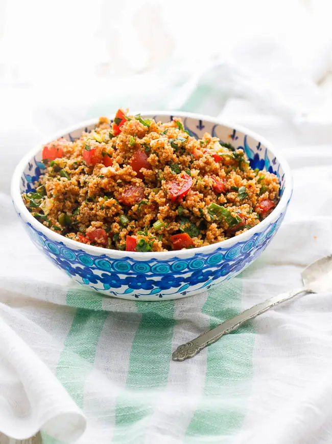 Kisir is a healthy Turkish bulgur salad that makes a great side dish or light meal.